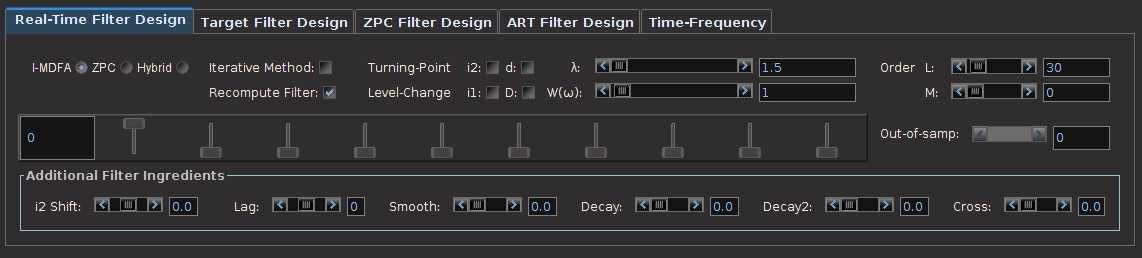 - Signal – The plot of the signal in real-time. When new data becomes available, the signal is automatically computed and replotted in real-time. This gives one the ability to closely monitory how the current filter is reacting to the incoming data.
