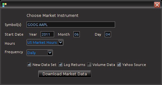 In choosing the assets for my portfolio, I arranged a group of companies/commodities whose products or services I use on a consistent basis (as arbitrary as any other portfolio selection method, right?). To this end, I chose Verizon (VZ) (service provider for my iPhone5), Microsoft (MSFT) (even though I mostly use Linux for my computing needs), Toyota (TM) ( I drive a Camry), Coffee (JO) (my morning espresso keeps the wheels turning), and Gold (GLD) (who doesn’t like Gold, a great hedge to any currency). For each of these assets, I built a trading signal using various in-sample time periods beginning summer of 2011 and ending toward the end of summer 2012, to ensure all seasonal market effects were included. The out-of-sample time period in which I test the performance of the filter for each asset ranges anywhere from 90 days to 125 days out-of-sample. I tried to keep the selection of in-sample and out-of-sample points as arbitrary as possible.